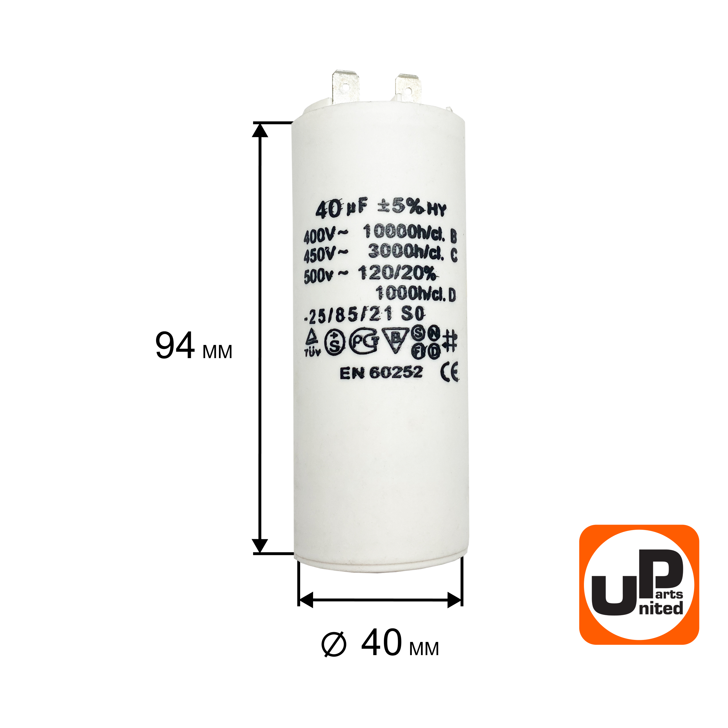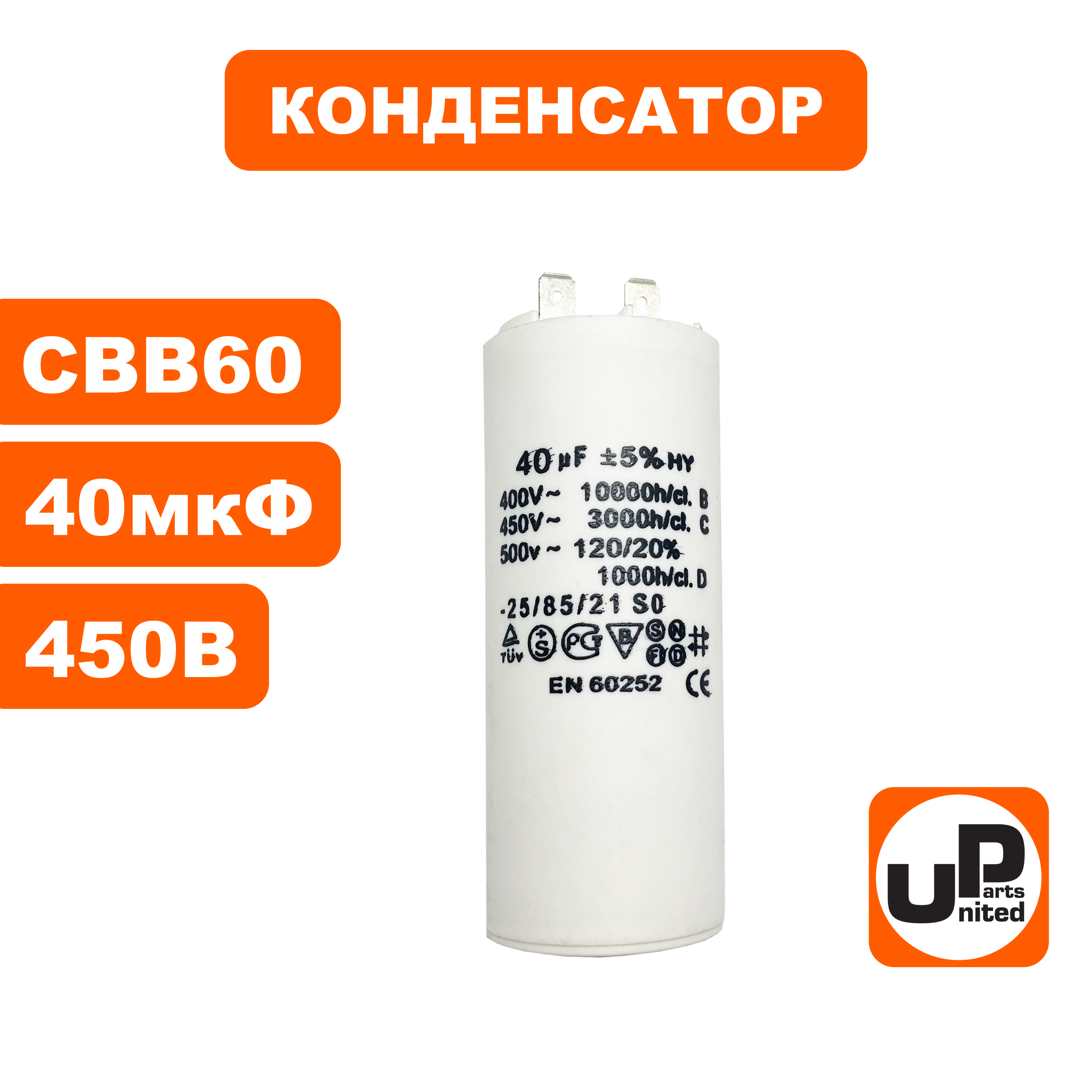 Конденсатор UNITED PARTS CBB60, 40 мкФ, 450В, 2 клеммы (90-0981) - цена, фото, технические характеристики