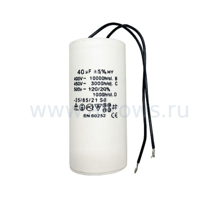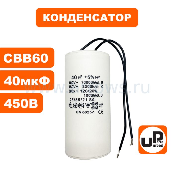 Конденсатор UNITED PARTS CBB60, 40 мкФ, 450В, гибкие выводы (90-0332) - цена, фото, технические характеристики
