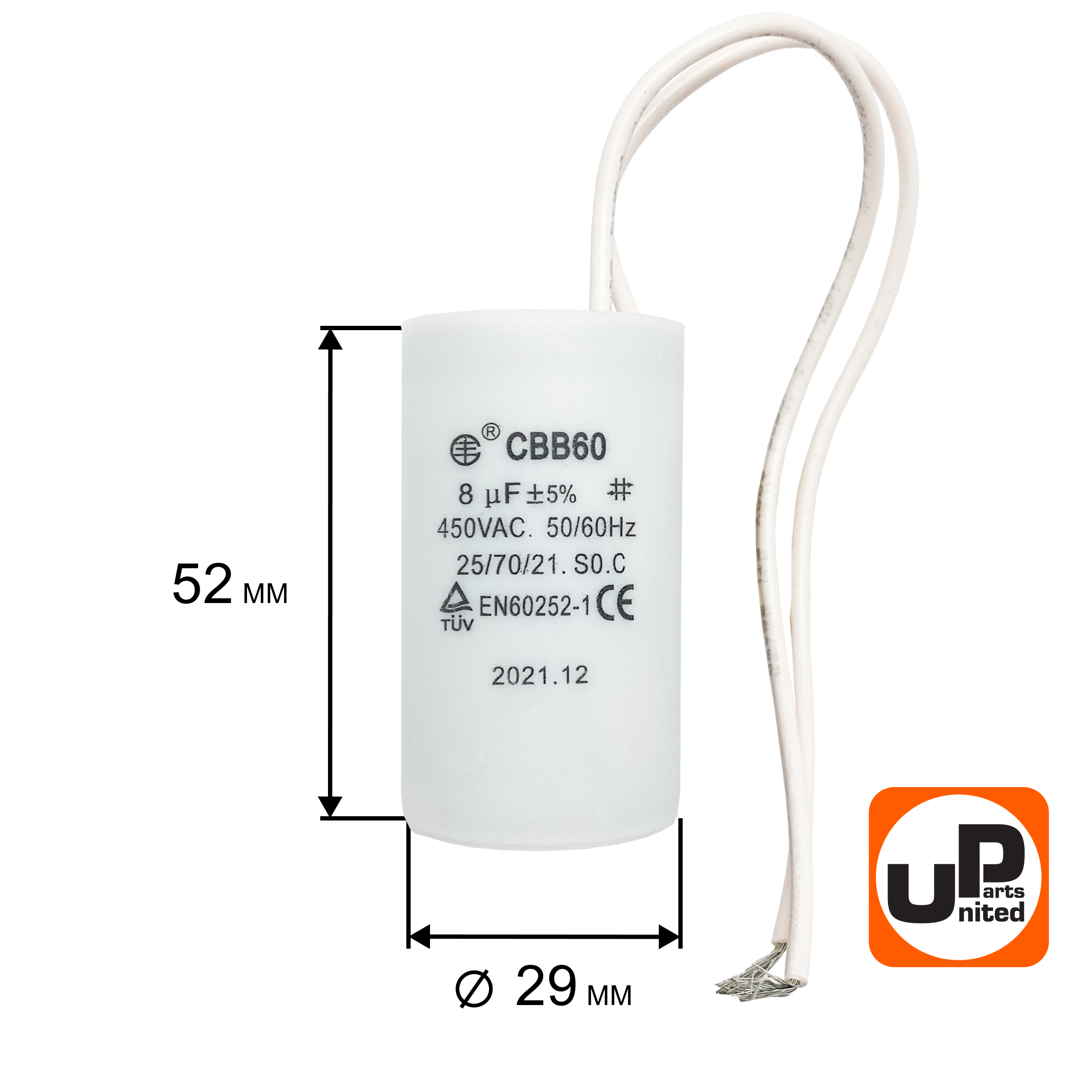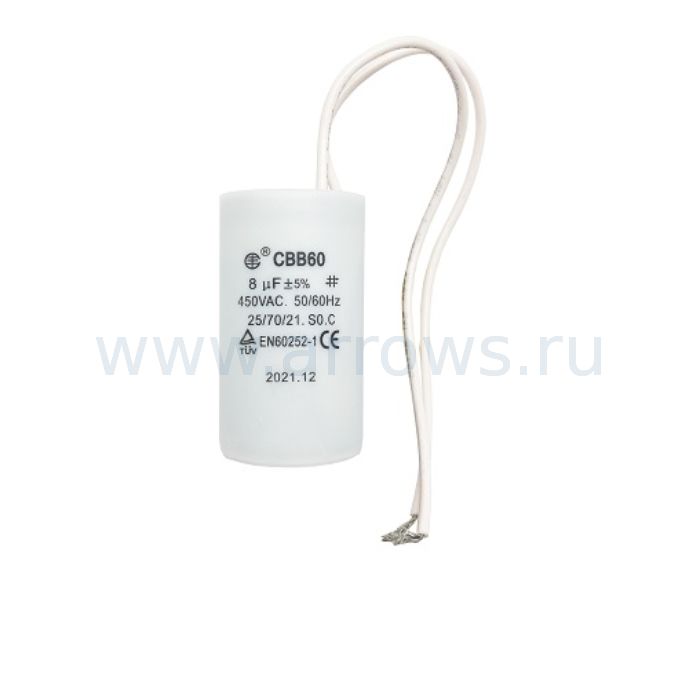 Конденсатор UNITED PARTS CBB60, 8 мкФ, 450В, гибкие выводы (90-0323) - цена, фото, технические характеристики