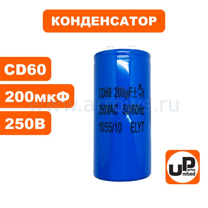 Конденсатор UNITED PARTS CD60, 200 мкФ ,250В, клеммы (90-1012) - цена, фото, технические характеристики