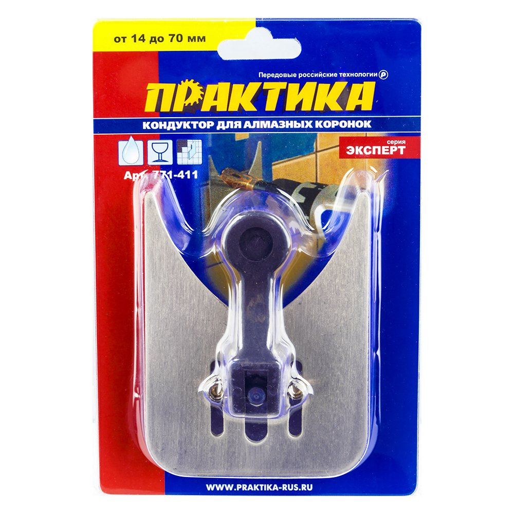 Кондуктор для сверления ПРАКТИКА от 14 до 70 мм, для алмазных коронок, металлический (771-411) - цена, фото, технические характеристики