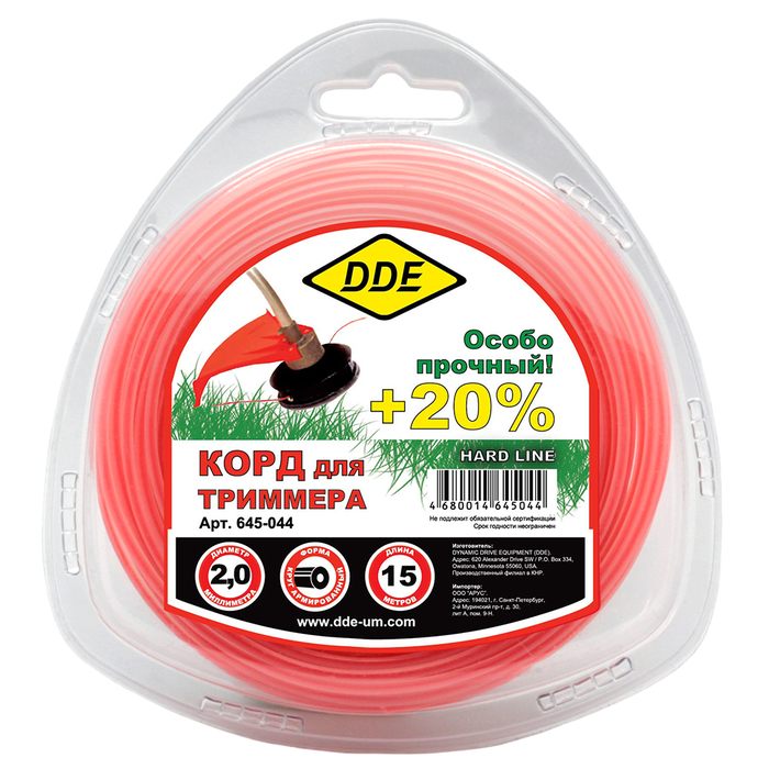 Корд триммерный DDE "Hard line" (круг армированный, диаметр 2,0 мм, длина 15 м) - цена, фото, технические характеристики