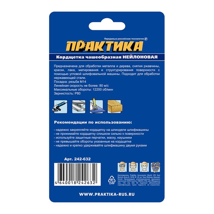 Кордщетка для МШУ чашеобразная абразивная ПРАКТИКА 65 мм М14 (242-632) - цена, фото, технические характеристики
