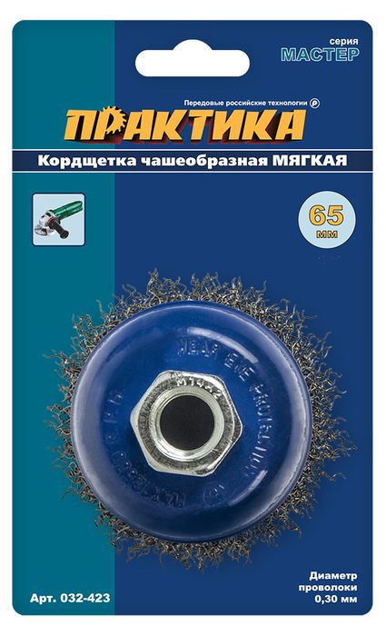 Кордщетка для МШУ чашеобразная мягкая ПРАКТИКА 65 мм М14 (1шт.) блистер (032-423) - цена, фото, технические характеристики