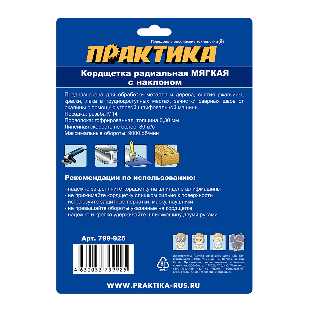 Кордщетка для МШУ радиальная с наклоном мягкая ПРАКТИКА 150 мм М14 - цена, фото, технические характеристики