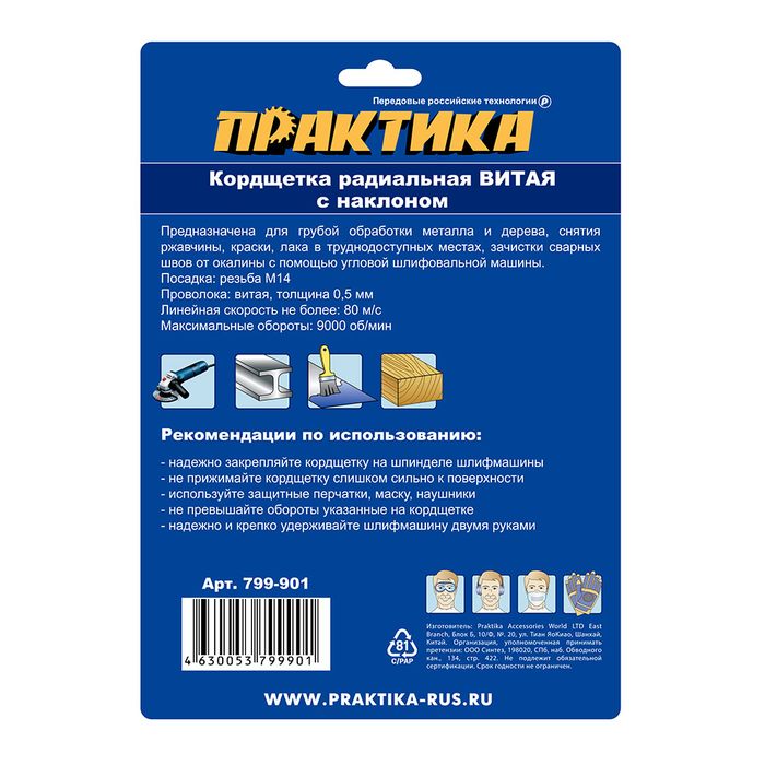 Кордщетка для МШУ радиальная с наклоном витая ПРАКТИКА 150 мм М14 - цена, фото, технические характеристики