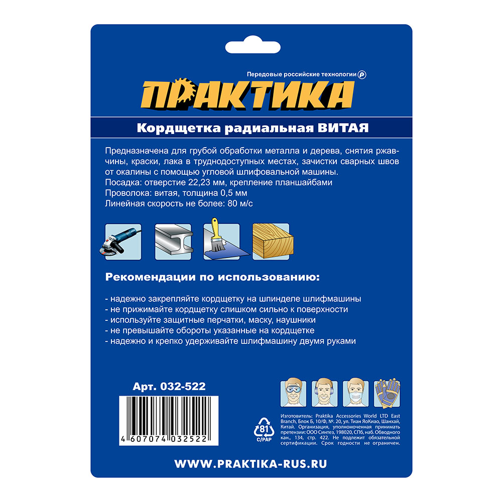 Кордщетка для МШУ радиальная витая ПРАКТИКА 150 х 22 мм (1шт.) блистер (032-522) - цена, фото, технические характеристики