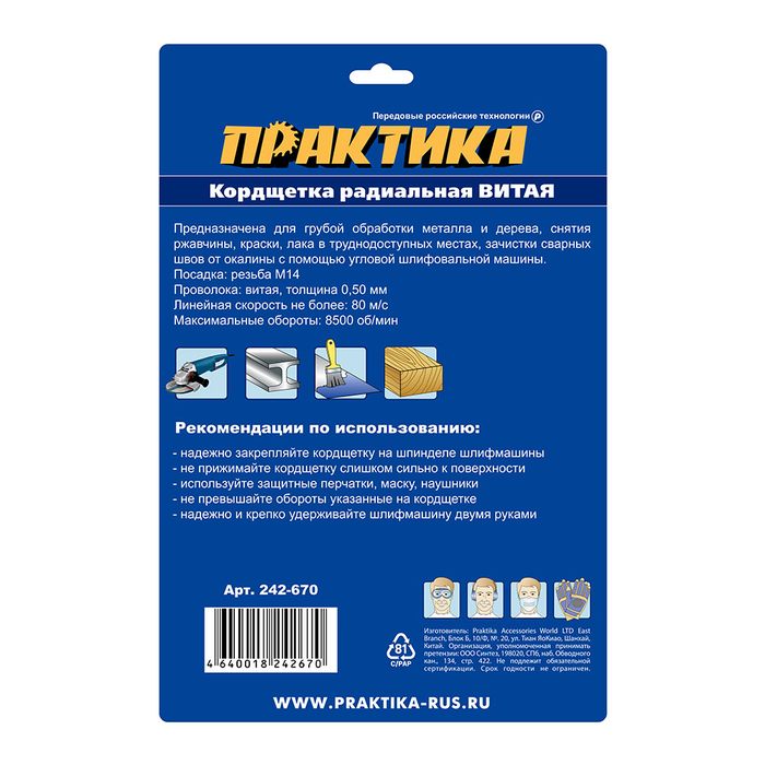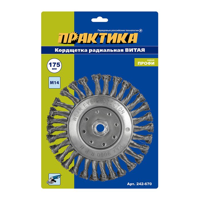 Кордщетка для МШУ радиальная витая ПРАКТИКА 175 мм, М14 (242-670) - цена, фото, технические характеристики
