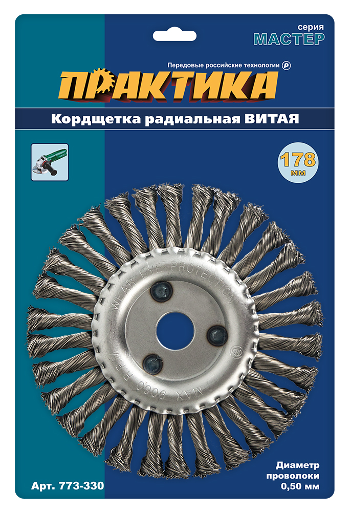 Кордщетка для МШУ радиальная витая ПРАКТИКА 178 х 22 мм (1шт.) блистер (773-330) - цена, фото, технические характеристики