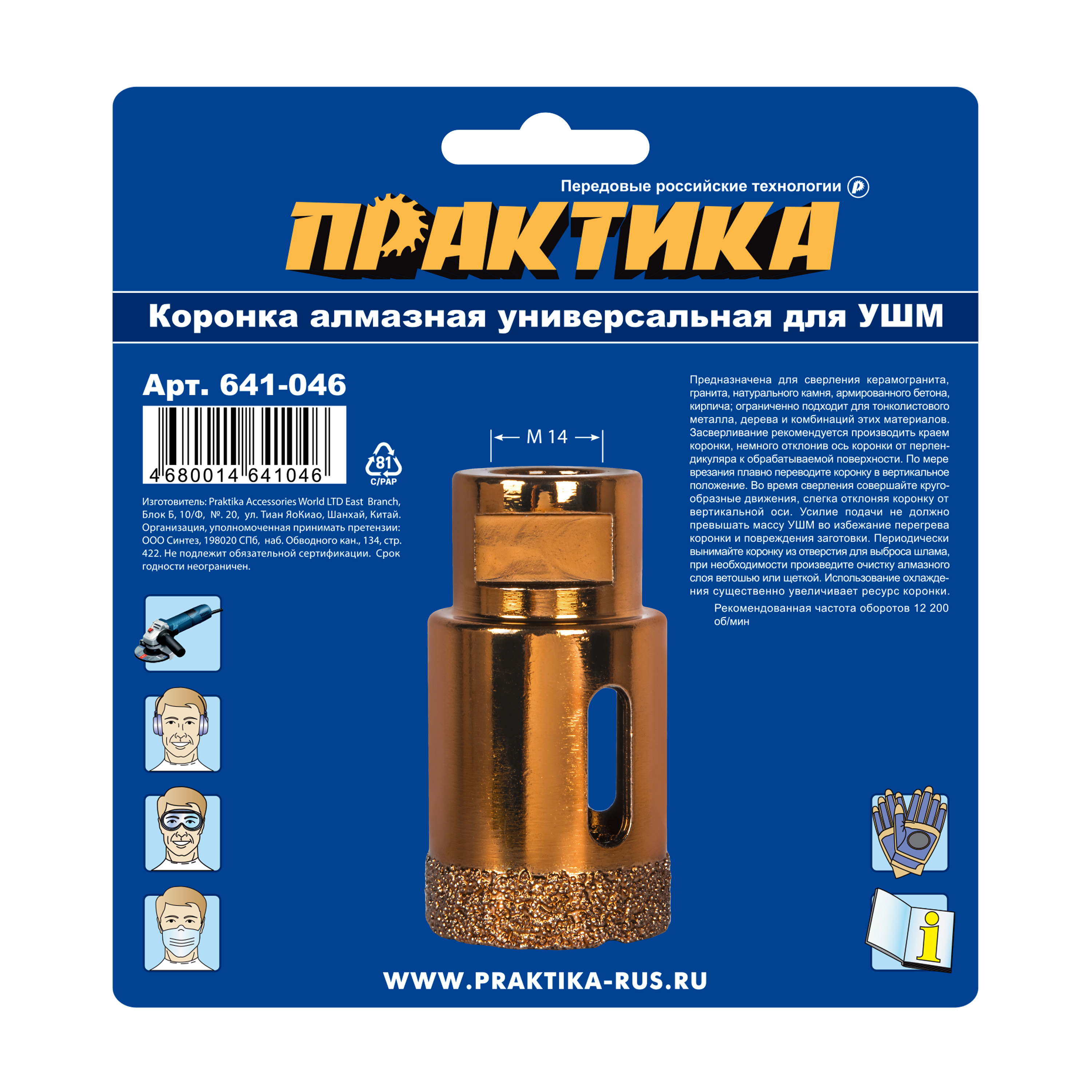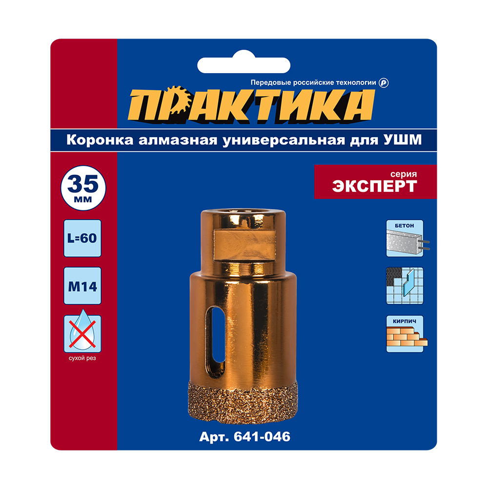 Коронка алмазная для УШМ ПРАКТИКА "Эксперт" 35 мм (1шт) блистер (641-046) - цена, фото, технические характеристики