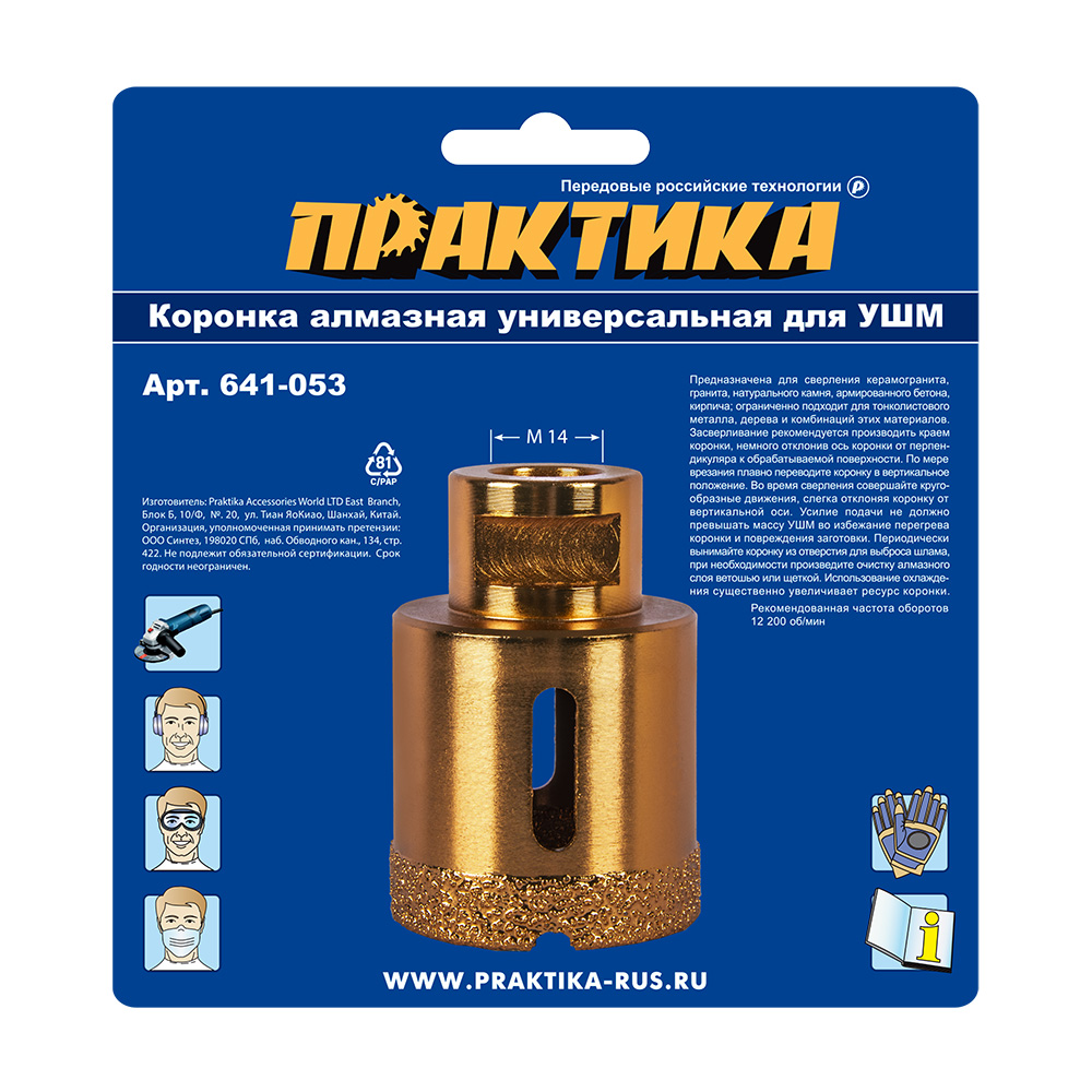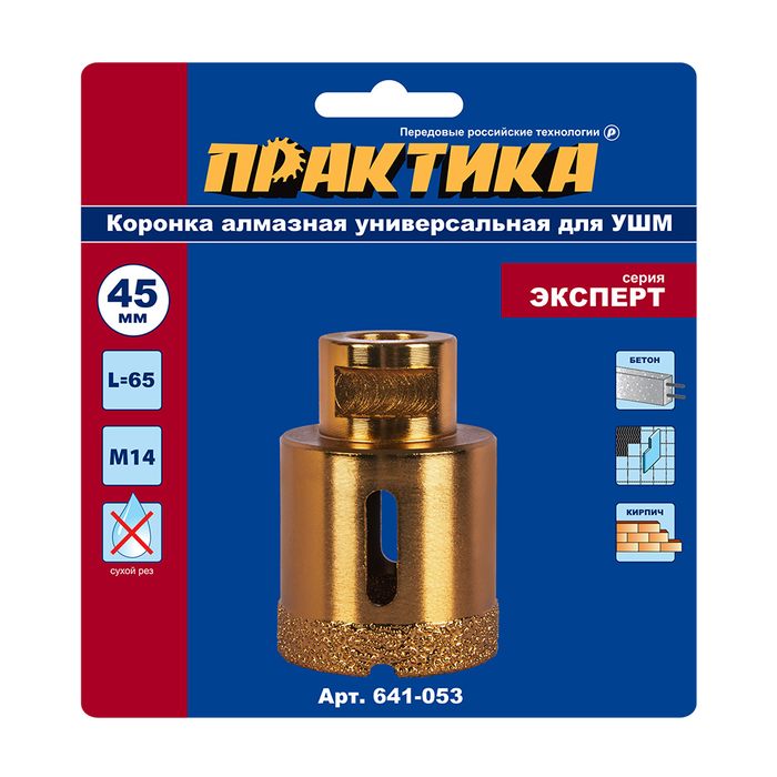 Коронка алмазная для УШМ ПРАКТИКА "Эксперт" 45 мм (1шт) блистер (641-053) - цена, фото, технические характеристики