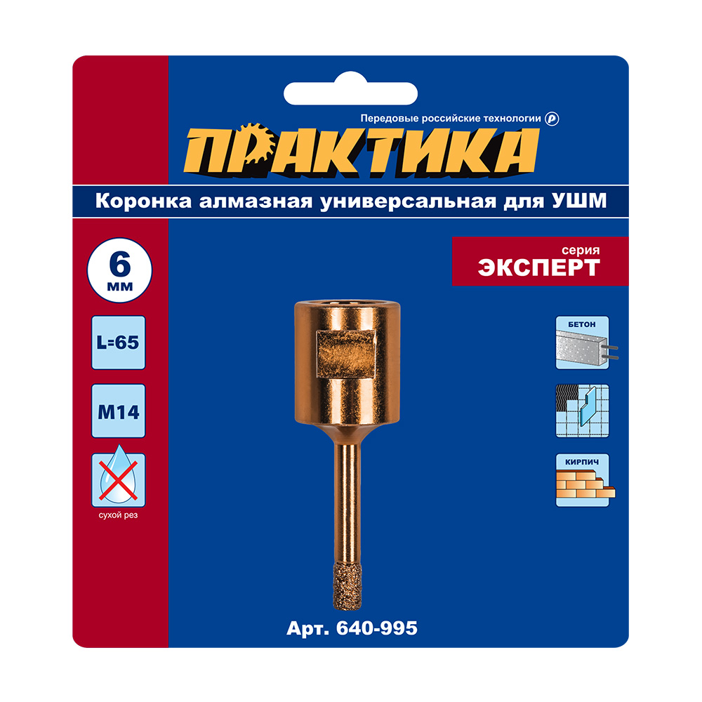 Коронка алмазная для УШМ ПРАКТИКА "Эксперт" 6 мм (1шт) блистер (640-995) - цена, фото, технические характеристики