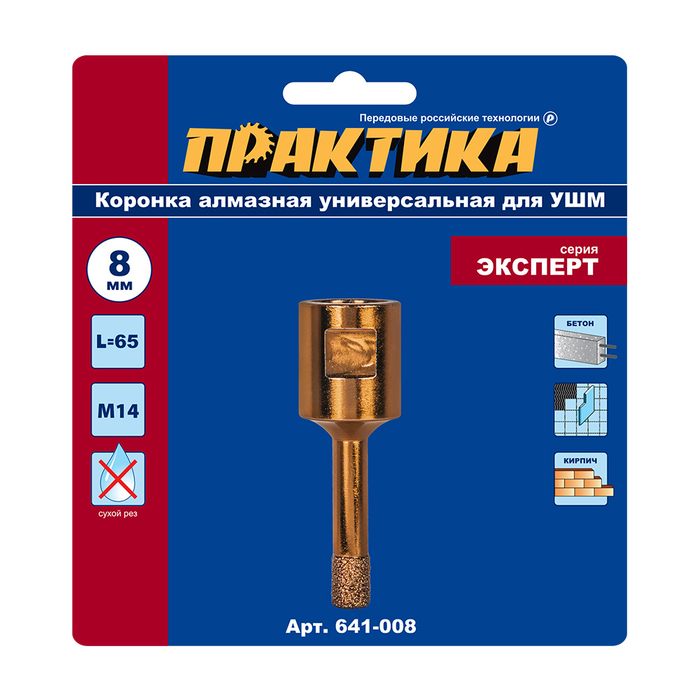 Коронка алмазная для УШМ ПРАКТИКА "Эксперт" 8 мм (1шт) блистер (641-008) - цена, фото, технические характеристики