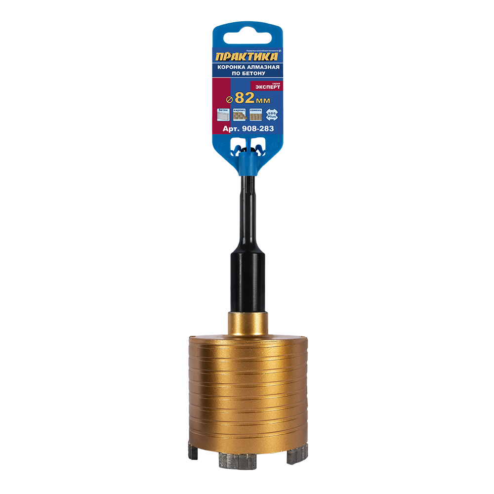 Коронка алмазная по бетону ПРАКТИКА "Эксперт" по бетону SDS-plus безударная 82 мм 5 турбосегментов 10 мм (908-283) 5 турбосегментов 10 мм (908-283)
