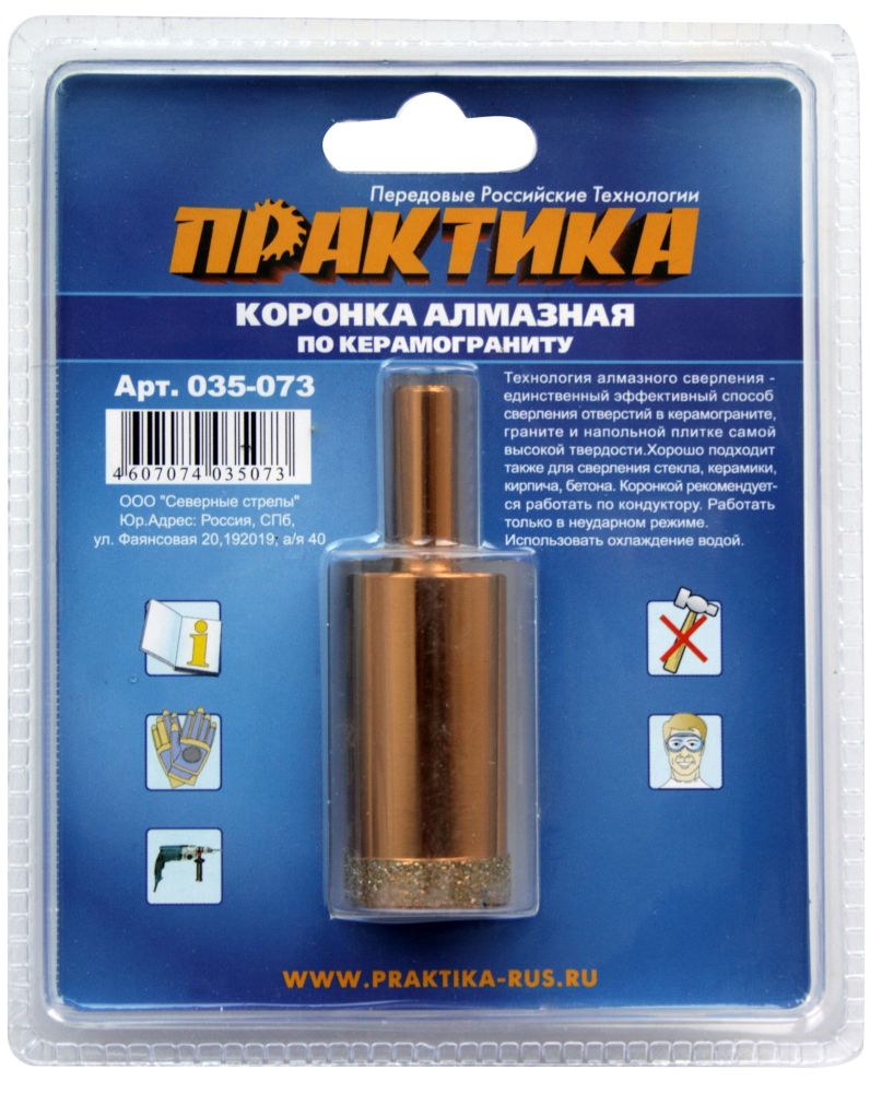 Коронка алмазная ПРАКТИКА "Эксперт" по керамограниту 25мм (1шт) блистер (035-073) - цена, фото, технические характеристики