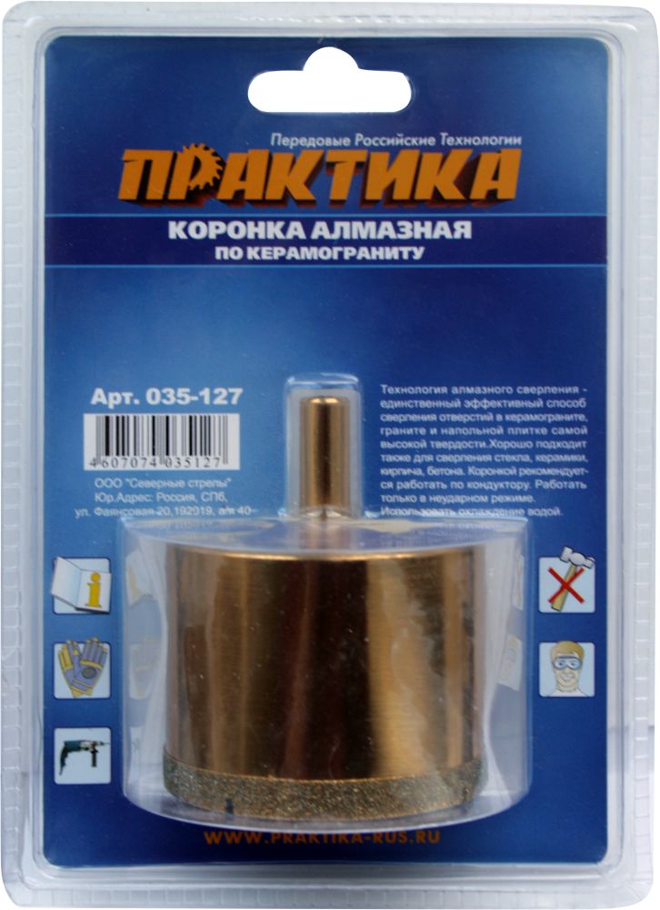 Коронка алмазная ПРАКТИКА "Эксперт" по керамограниту 65мм (1шт) блистер (035-127) - цена, фото, технические характеристики