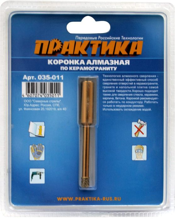 Коронка алмазная ПРАКТИКА "Эксперт" по керамограниту 6мм (1шт) блистер (035-011) - цена, фото, технические характеристики