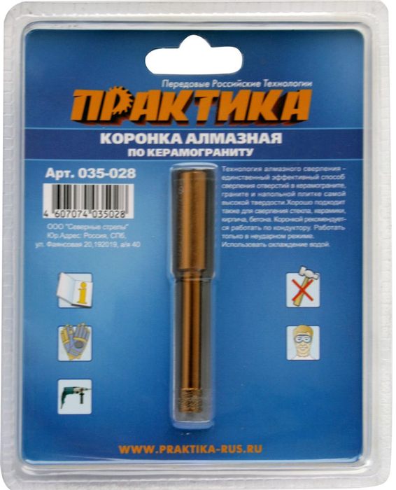 Коронка алмазная ПРАКТИКА "Эксперт" по керамограниту 8мм (1шт) блистер (035-028) - цена, фото, технические характеристики