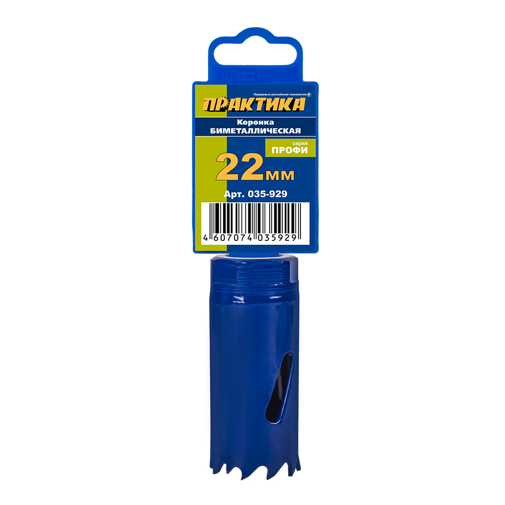 Коронка биметаллическая ПРАКТИКА 22 мм (1шт), клипса (035-929) - цена, фото, технические характеристики