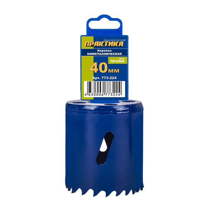 Коронка биметаллическая ПРАКТИКА 40 мм (1шт), клипса (773-224) - цена, фото, технические характеристики