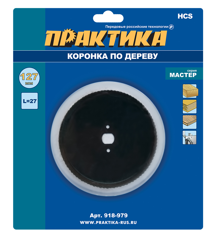 Коронка HCS по дереву/гипсокартону ПРАКТИКА "Мастер" 127 мм, L-27мм, без адаптера (1 шт), блистер - цена, фото, технические характеристики