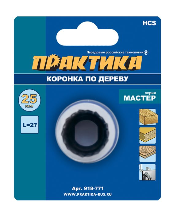 Коронка HCS по дереву/гипсокартону ПРАКТИКА "Мастер" 25 мм, L-27мм, без адаптера (1 шт), блистер - цена, фото, технические характеристики