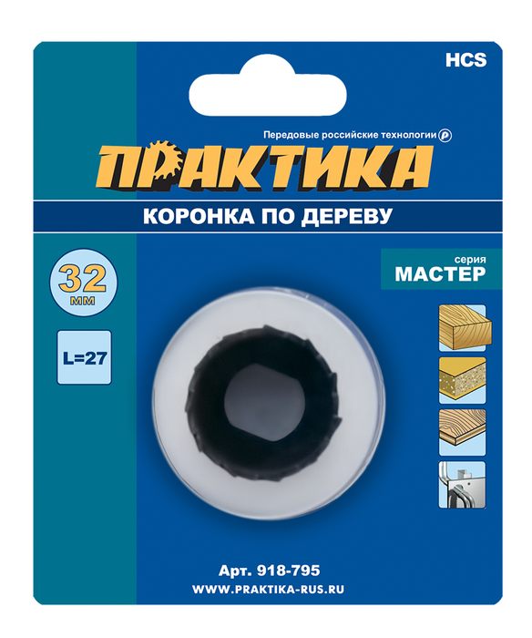 Коронка HCS по дереву/гипсокартону ПРАКТИКА "Мастер" 32 мм, L-27мм, без адаптера (1 шт), блистер - цена, фото, технические характеристики