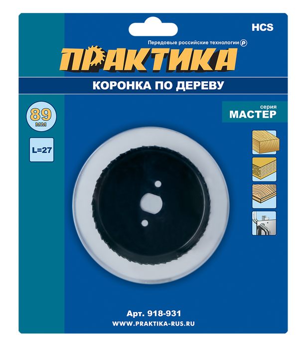 Коронка HCS по дереву/гипсокартону ПРАКТИКА "Мастер" 89 мм, L-27мм, без адаптера (1 шт), блистер - цена, фото, технические характеристики