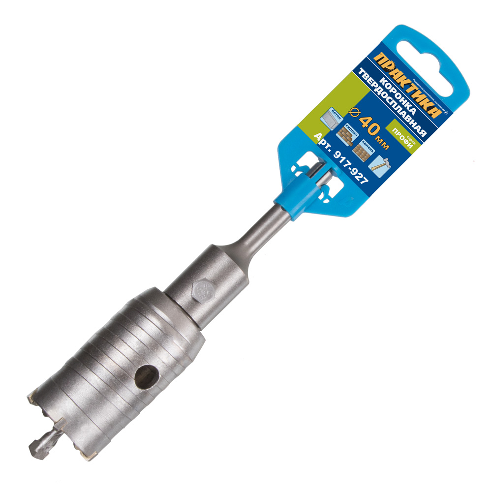 Коронка твердосплавная ПРАКТИКА SDS- Plus ударная 40 мм (1шт.) клипса (917-927) - цена, фото, технические характеристики
