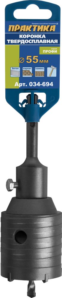 Коронка твердосплавная ПРАКТИКА SDS- Plus ударная 55 мм (1шт.) клипса (034-694) - цена, фото, технические характеристики