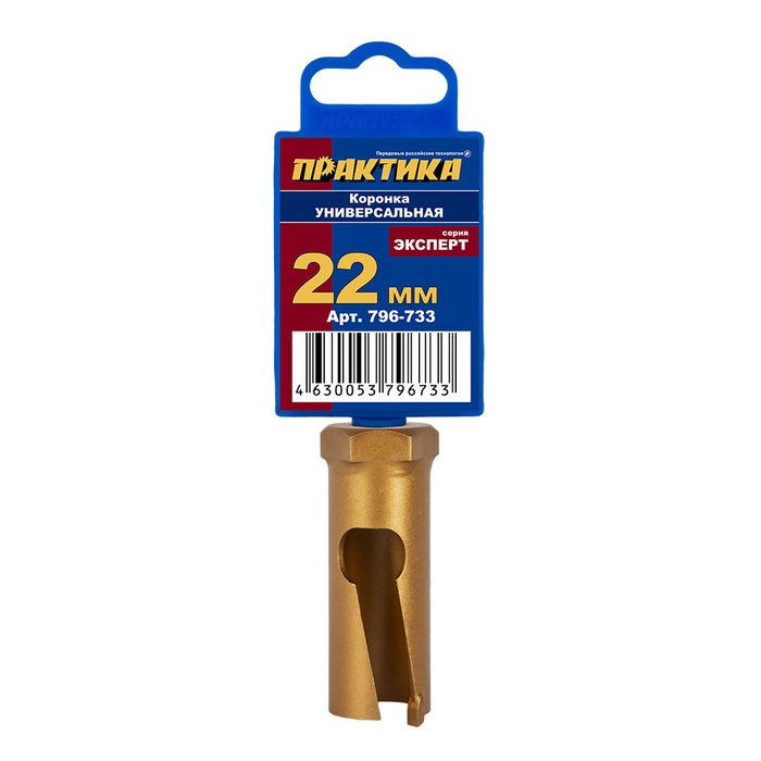 Коронка твердосплавная универсальная ПРАКТИКА 22мм (1шт) клипса (796-733) - цена, фото, технические характеристики