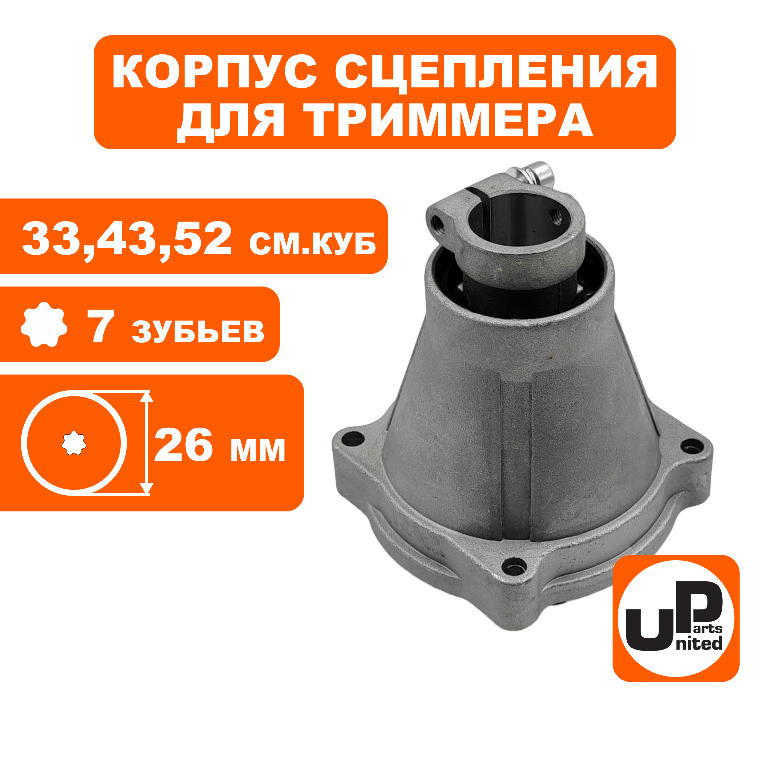 Корпус сцепления в сборе UNITED PARTS Ø26х7Т для триммеров 33-52 куб.см. - цена, фото, технические характеристики