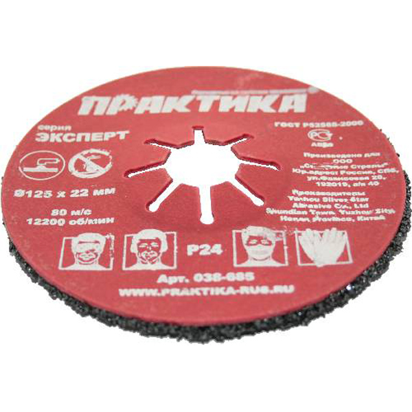 Круг абразивный торцевой ПРАКТИКА 125 х 22 мм Р 24 (1 шт) картонный подвес (038-685) - цена, фото, технические характеристики