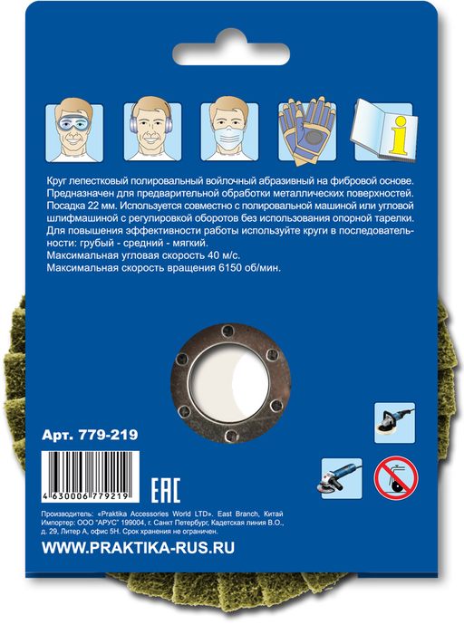 Круг лепестковый полировальный ПРАКТИКА 125 х 22 мм, грубый, войлочный, абразивный (779-219) - цена, фото, технические характеристики