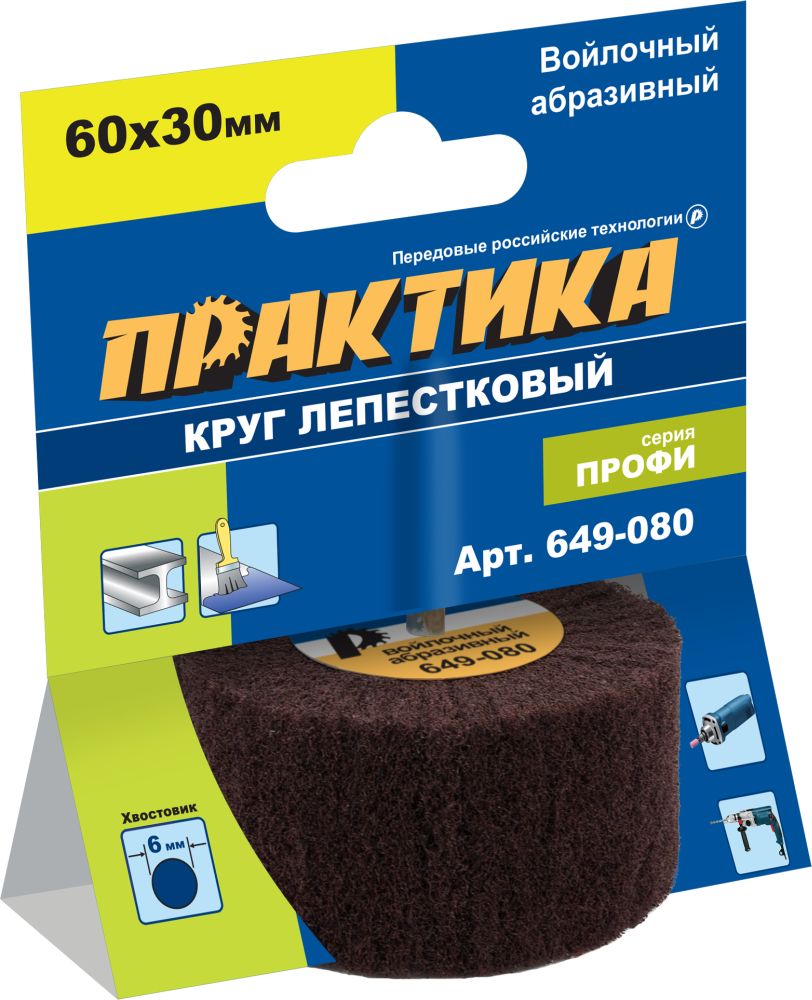 Круг лепестковый с оправкой ПРАКТИКА 60х30мм, войлочный, хвостовик 6 мм, серия Профи (649-080) - цена, фото, технические характеристики
