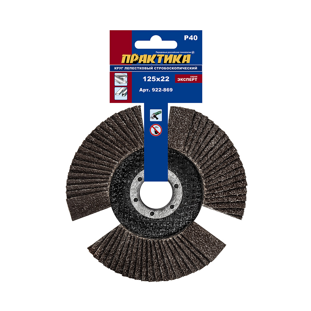 Круг лепестковый торцевой ПРАКТИКА стробоскопический 125 х 22 мм Р 40 (1шт.) серия Эксперт (922-869) - цена, фото, технические характеристики