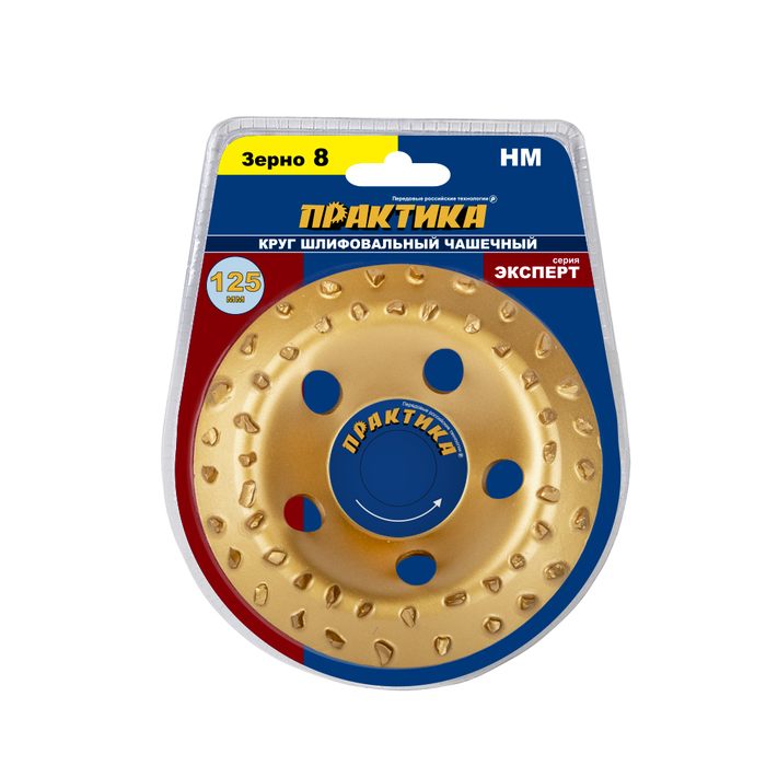 Чашка твёрдосплавная ПРАКТИКА 125 х 22 мм наклонная, зерно # 8 крупное (773-590) наклонный, зерно # 8 крупное
