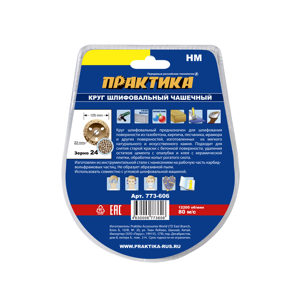 Чашка твёрдосплавная ПРАКТИКА 125 х 22 мм наклонная, зерно # 24 мелкое (773-606) - цена, фото, технические характеристики