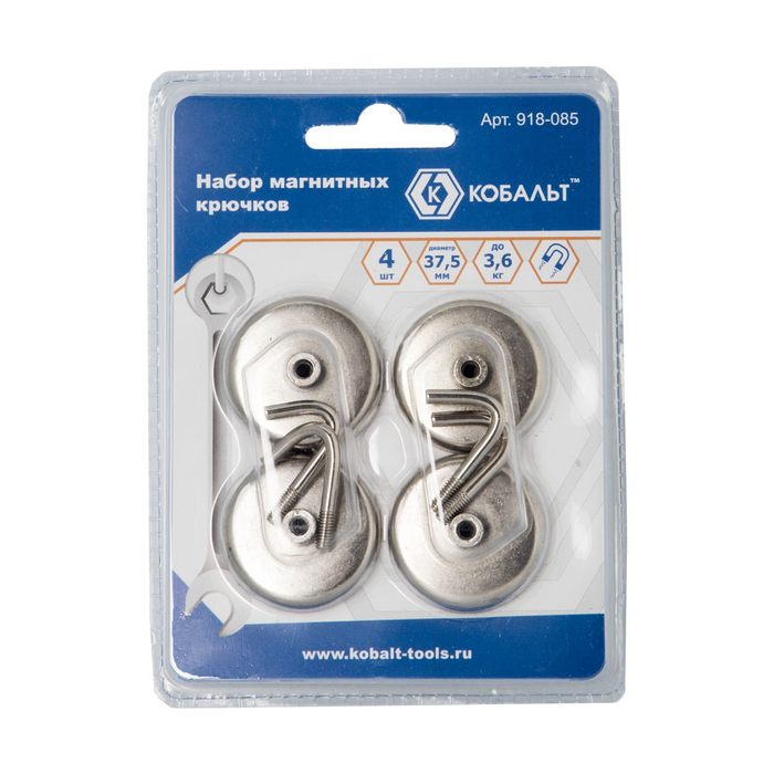 Крючок магнитный КОБАЛЬТ основание 37,5 мм, до 3,6 кг (4 шт.) блистер (918-085) - цена, фото, технические характеристики