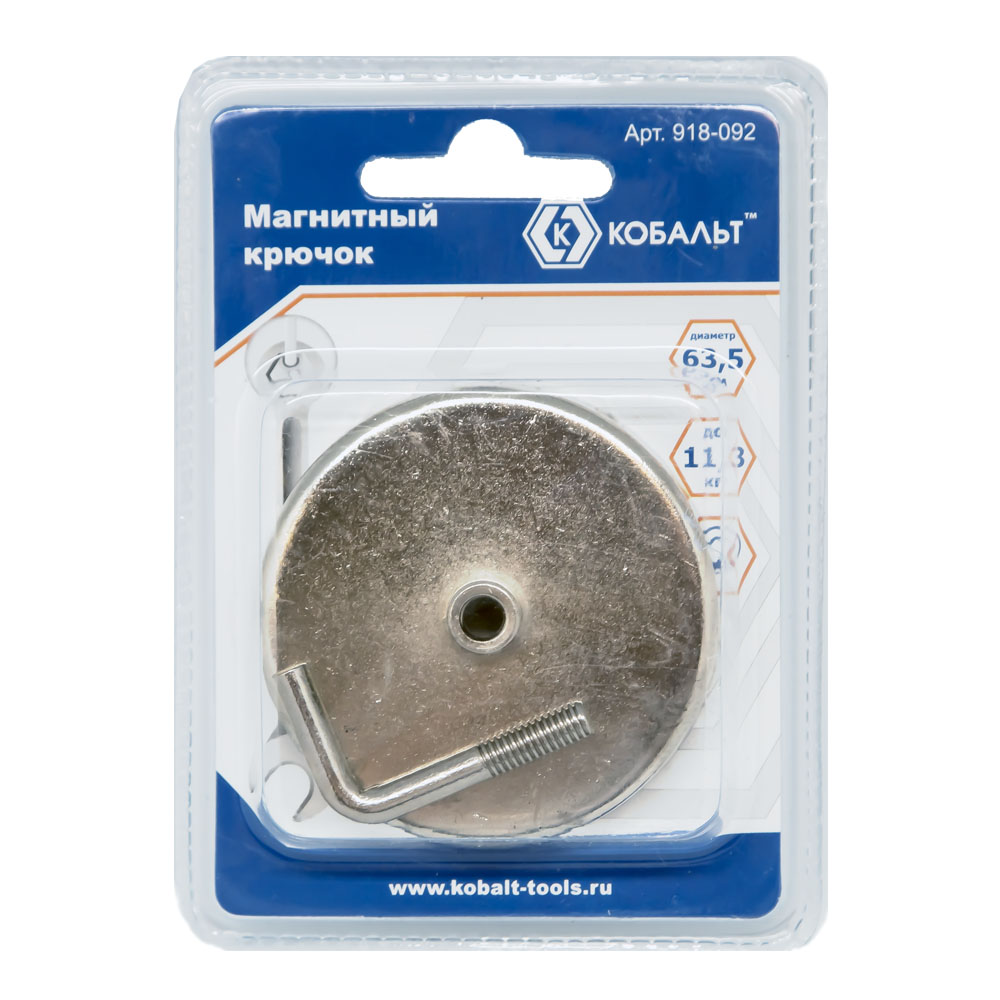 Крючок магнитный КОБАЛЬТ основание 63,5 мм, до 11,3 кг (1 шт.) блистер (918-092) - цена, фото, технические характеристики
