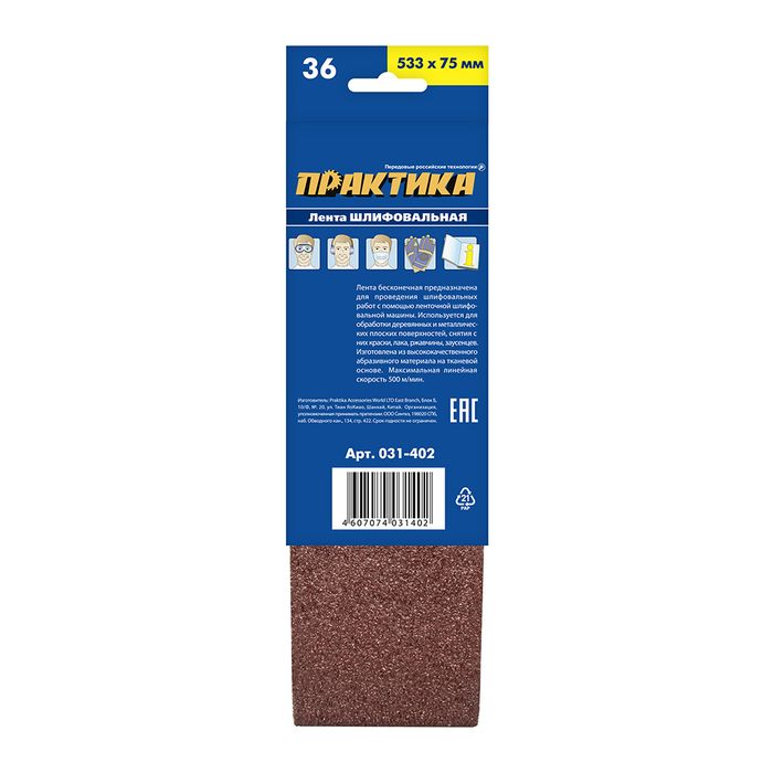 Лента шлифовальная ПРАКТИКА 75 х 533 мм P 36 (3 шт.) картонный подвес (031-402) - цена, фото, технические характеристики