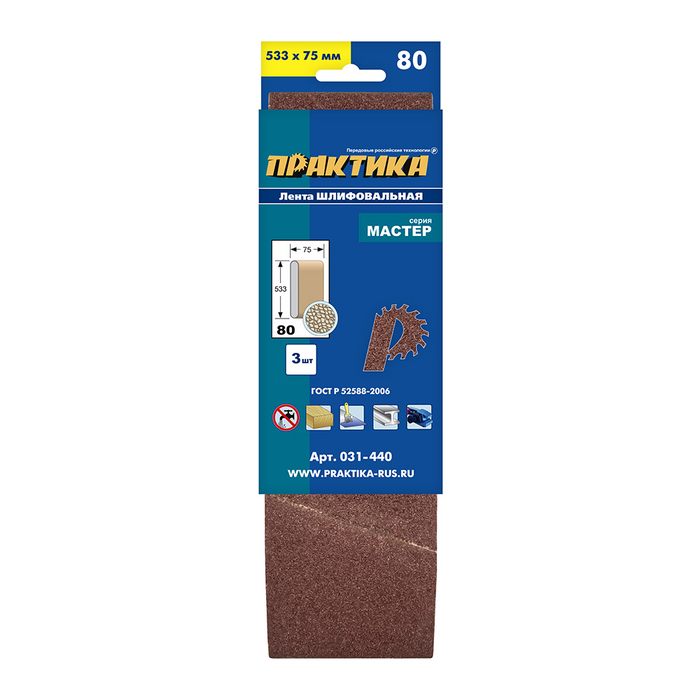 Лента шлифовальная ПРАКТИКА 75 х 533 мм P 80 (3шт.) картонный подвес (031-440) - цена, фото, технические характеристики