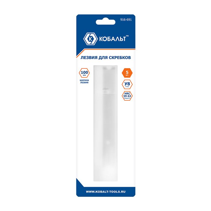 Лезвия для скребков КОБАЛЬТ сменные, ширина 100 мм, сталь У8, 5 шт. в комплекте, блистер (916-691) - цена, фото, технические характеристики