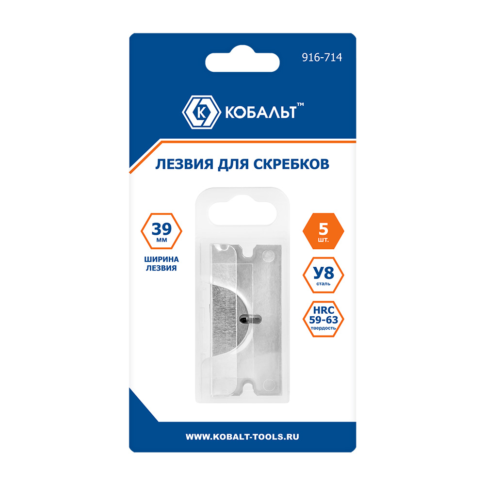 Лезвия для скребков КОБАЛЬТ сменные, ширина 39 мм, сталь У8, 5 шт. в комплекте, блистер (916-714) - цена, фото, технические характеристики