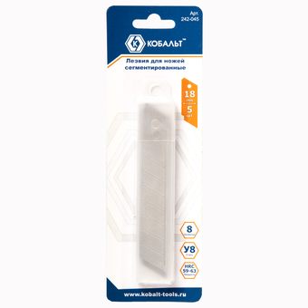 Лезвия сменные для ножей КОБАЛЬТ ширина 18 мм, сегментированные, 8 сегментов, сталь У8, 5 шт. в комплекте, блистер (242-045) - цена, фото, технические характеристики