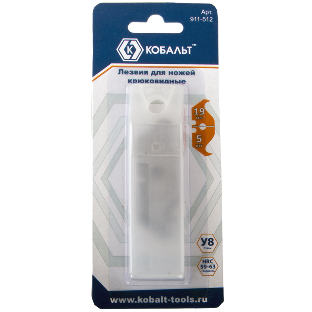 Лезвия сменные для ножей КОБАЛЬТ ширина 19 мм, крюковидные, сталь У8, 5 шт. в комплекте, блистер (911-512) - цена, фото, технические характеристики