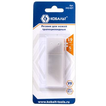 Лезвия сменные для ножей КОБАЛЬТ ширина 19 мм, трапециевидные, сталь У8, 5 шт. в комплекте, блистер (242-021) - цена, фото, технические характеристики