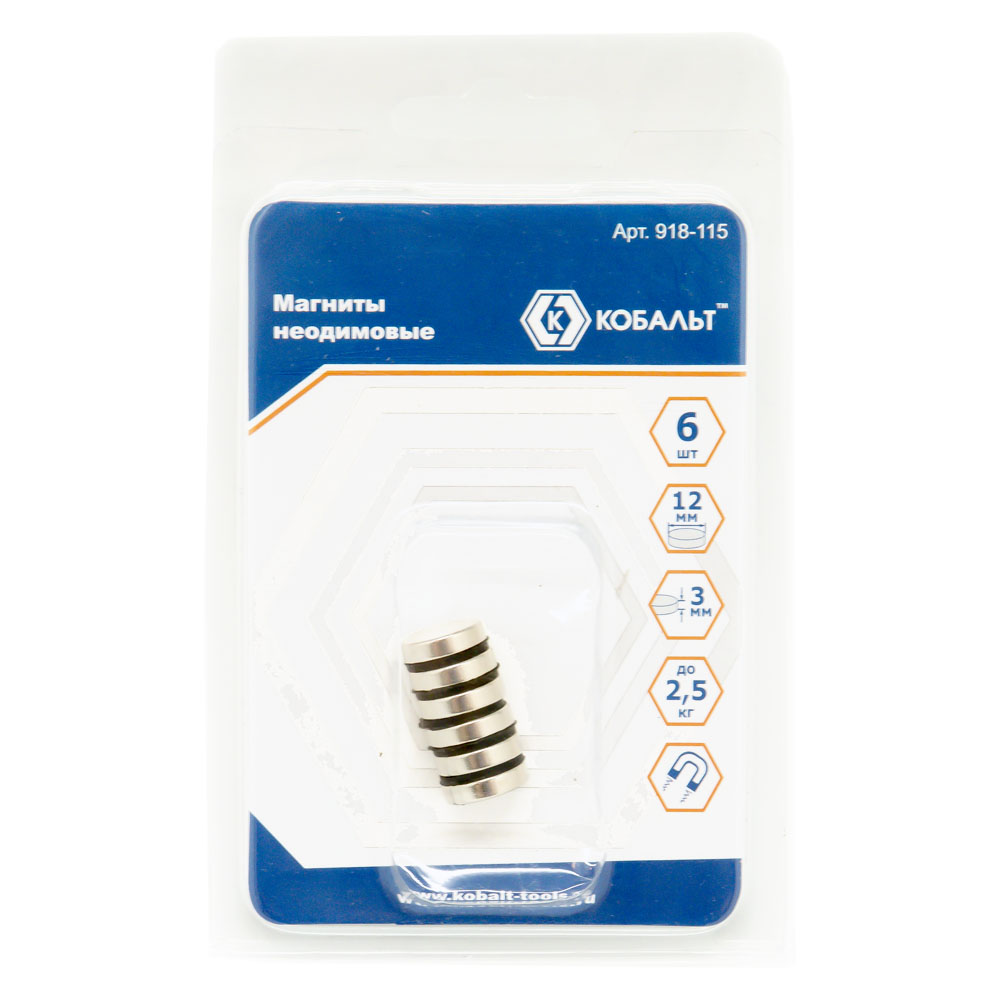 Магнит неодимовый КОБАЛЬТ диск 12 х 3 мм (6 шт.) блистер (918-115) - цена, фото, технические характеристики