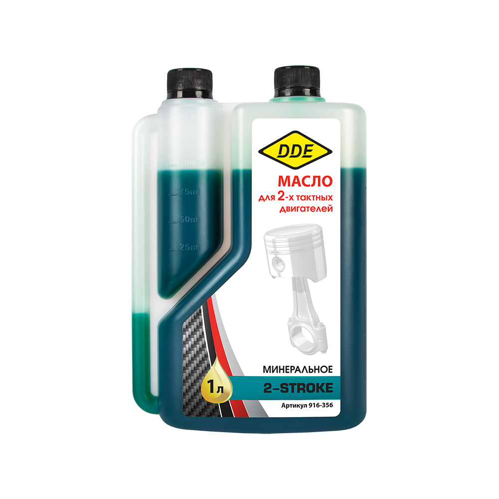 Масло Масло DDE 2-тактное минеральное, 1 л, зелёное, стандарт API TB, с дозатором - цена, фото, технические характеристики