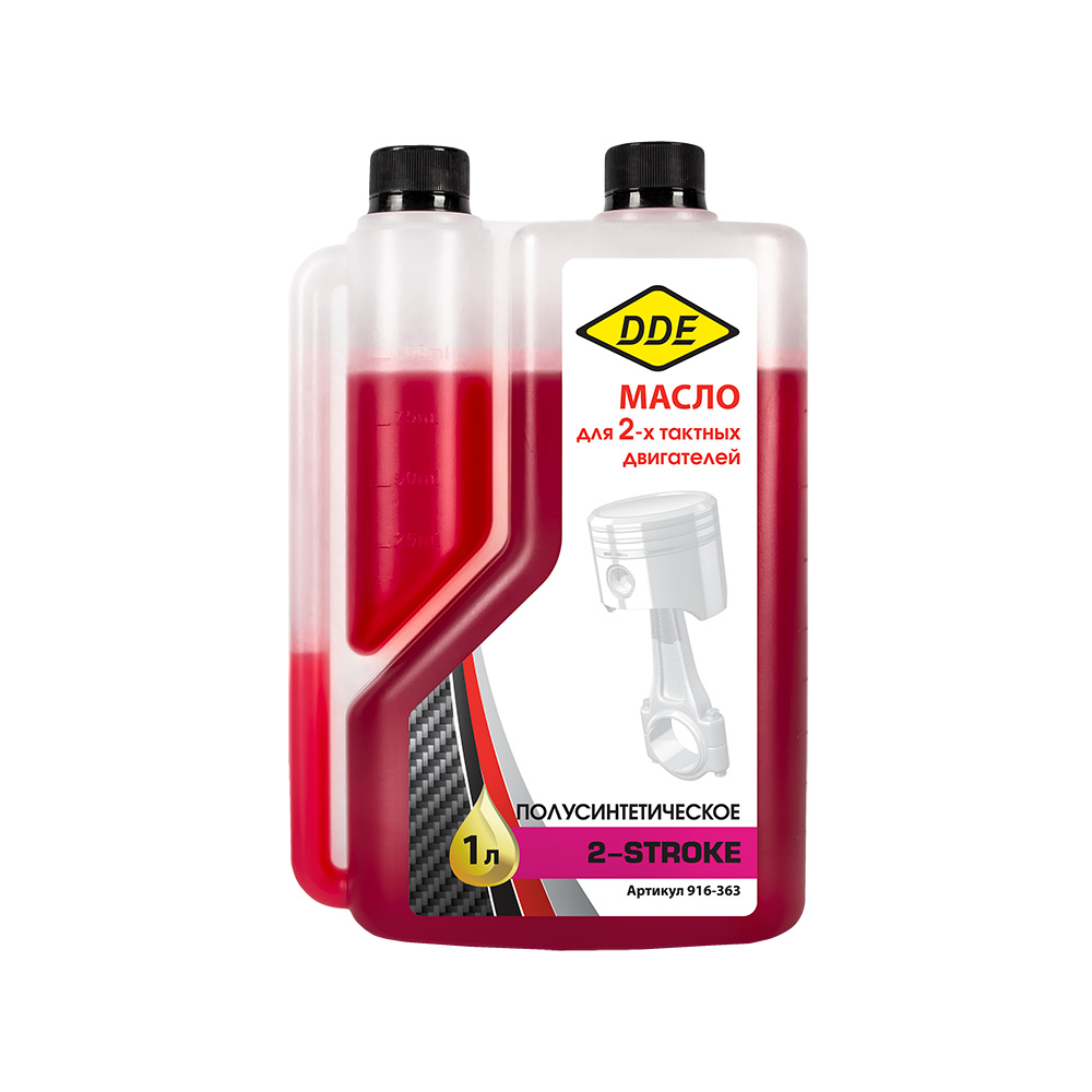 Масло DDE 2-тактное полусинтетическое, 1 л, красное, стандарт API TС, с дозатором - цена, фото, технические характеристики